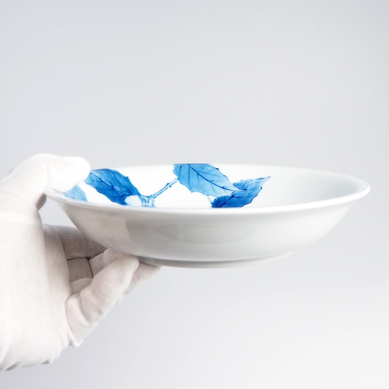 浅めの広い丸鉢に、呉須一色でドングリが実るコナラを描きました。