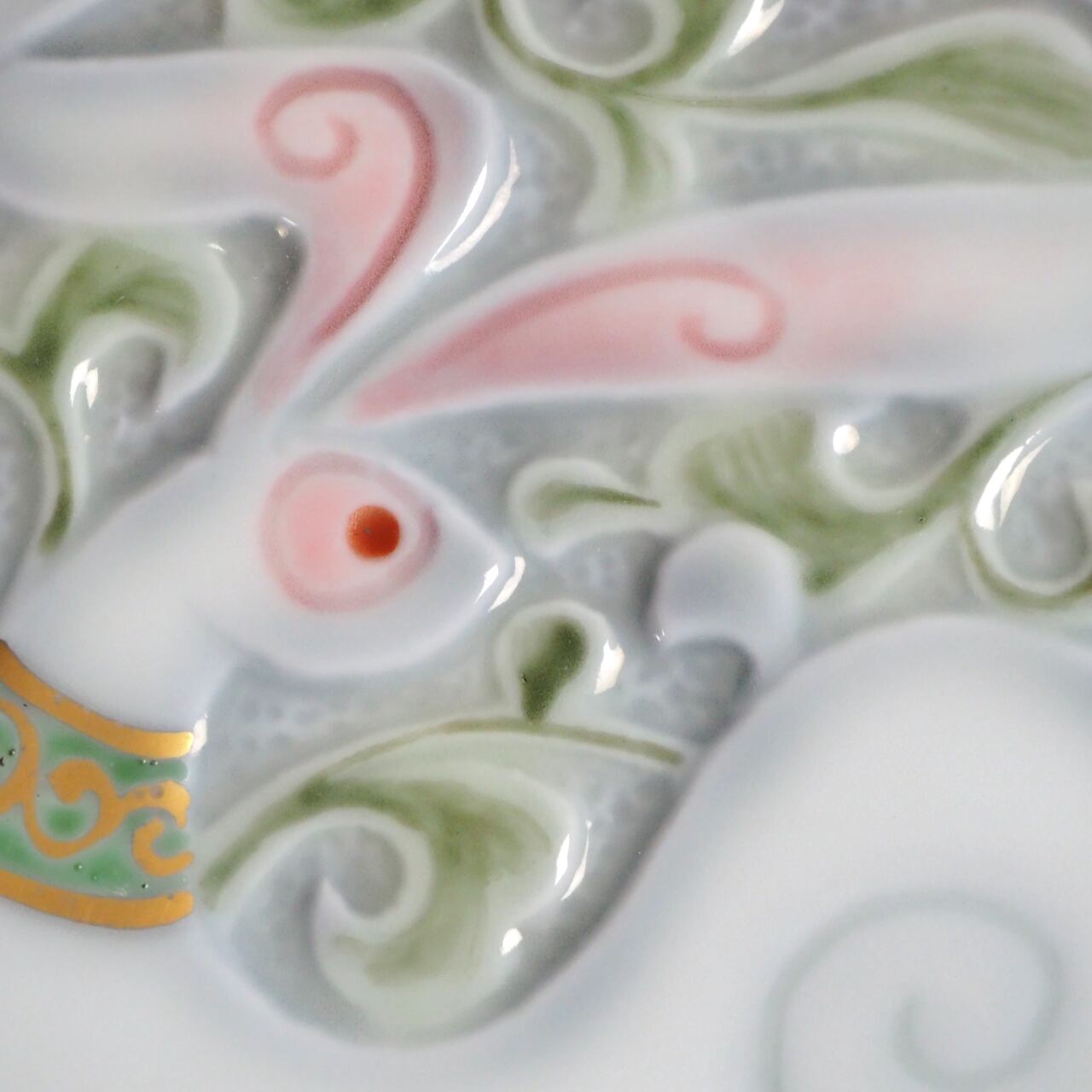 注)この作品に使用されている絵の具の特性として、気温、湿度、窯の火回り具合、等によって一部の絵の具の濃さが個々で変化します。そのため、商品画像とお手元に届いた作品の色合いが違う場合があります。ご了承ください。